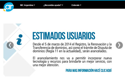 Cabe aclarar que los aranceles no son retroactivos y que la zona .AR estará disponible solamente para Organismos Oficiales.