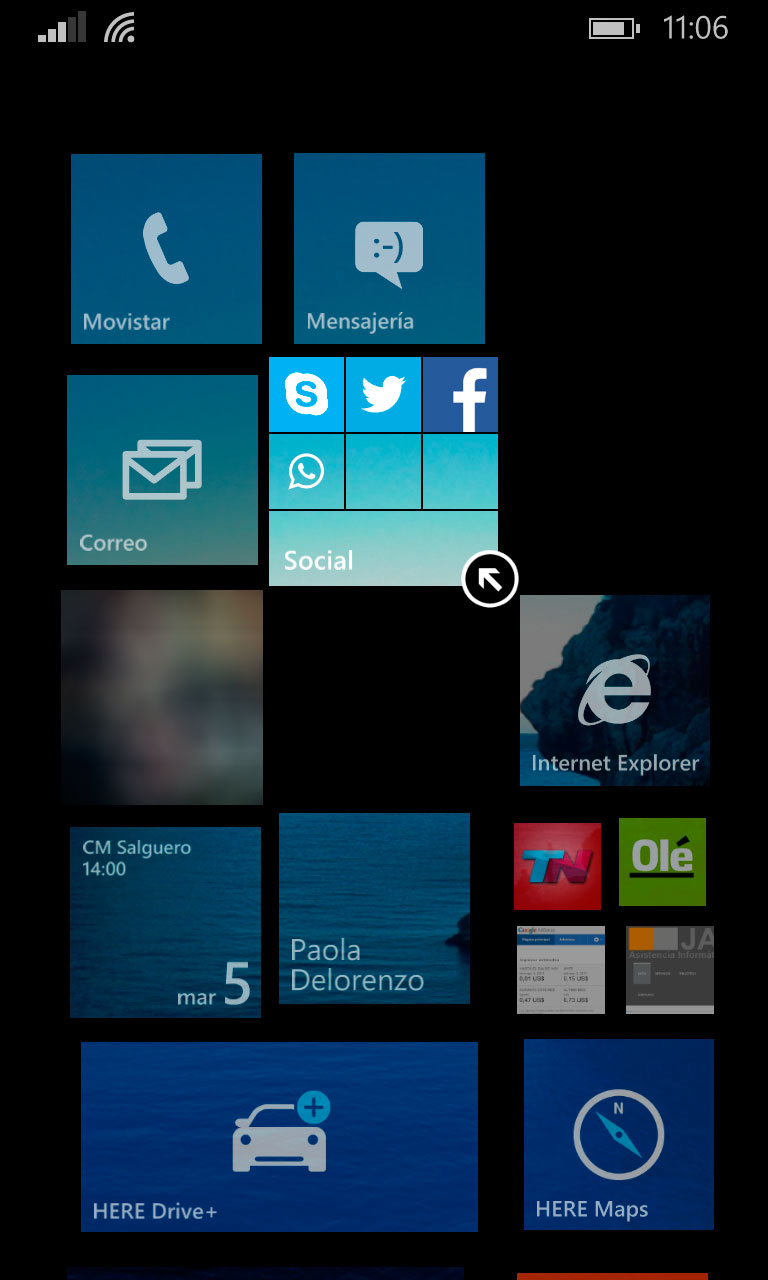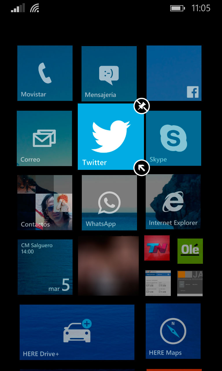 Tocas un Tile y lo mantenes hasta que aparecen los iconos de desplazamiento