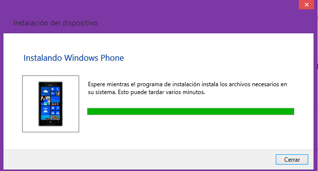 Durante este proceso el dispositivo mostrará alternativamente la barra de progreso y se reiniciará alguna vez. Es posible que el instalador solicite que ingreses un código PIN, pero el proceso continuará de todos modos…