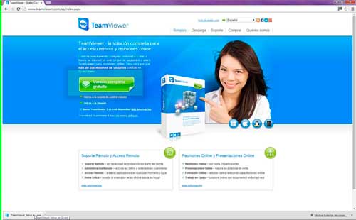 - Ingrese con un navegador a http://teamviewer.com y haga click sobre el botón Versión completa gratuita para comenzar la descarga