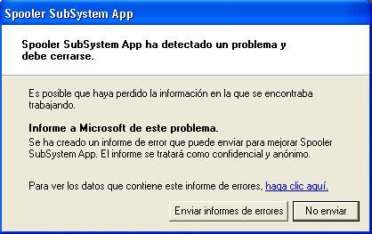 - Aparecen errores diversos relacionados con el servicio Spooler o Cola de Impresión