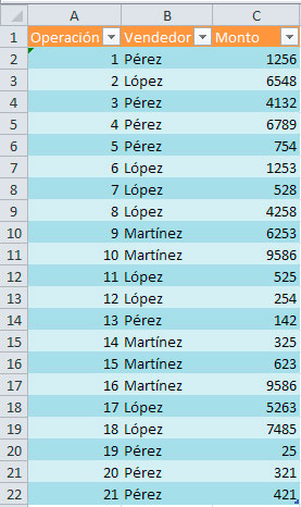 Y quisiéramos que el usuario pueda filtrar los datos para un vendedor en particular, debemos decirle al filtro que su rango a filtrar será la columna B (Vendedor) y le ofrezca al operador que elija como criterio entre los vendedores Pérez, López y Martínez. Es decir, cada uno de los valores únicos sin repetición de esa columna. Para esto podríamos cargar una lista con los valores únicos y mostrarla al operador para que elija.