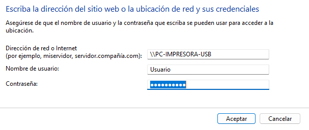 Para evitar errores de autenticación durante la configuración de la impresora, previamente deberás cargar en cada computadora, las credenciales de acceso a la PC host (la que tiene conectada la impresora USB). Estas credenciales son el usuario y la contraseña que anotaste en el paso anterior y, para guardarlas en cada compu, harás lo siguiente: