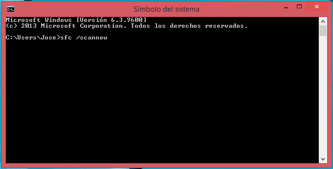 Cuando aparezca la ventana de sistema con el cursor titilando tipear sfc /scannow y presionar [enter]